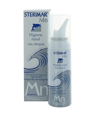Sterimar Mn Água do mar com manganésio limpa e elimina os alergénios em contacto com a mucosa nasal (pólen, partículas de poluição, pó, ácaros e pelo de animais). Hidrata e restaura a humidade natural da mucosa nasal. Previne o desenvolvimento de alergias. Recomendado no início da época de alergias e na limpeza das fossas nasais antes da administração de tratamentos relacionados com distúrbios nos ouvidos, nariz e garganta. Não causa sonolência. Pode ser utilizado por bebés, crianças e adultos.