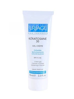 Uriage Kératosane 30 Gel Queratolítico possui uma textura gel-creme ideal para peles espessas em zonas localizadas, nomeadamente, calosidades na planta do pé, cotovelos duros e secos, crosta láctea nos bebés, couro cabeludo com placas e queratoses pilares. A concentração em Ureia (30%) confere-lhe uma elevada ação queratolítica (remoção das células mortas e acumuladas) nas zonas rugosas e demasiado espessas, permitindo à pele reencontrar o seu aspeto liso, macio, suave e sem rugosidade.s A sua elevada tolerância torna-o indicado para pele muito seca com tendência atópica. Sem perfume. Hipoalergénico. Não comedogénico. Testado dermatologicamente.
