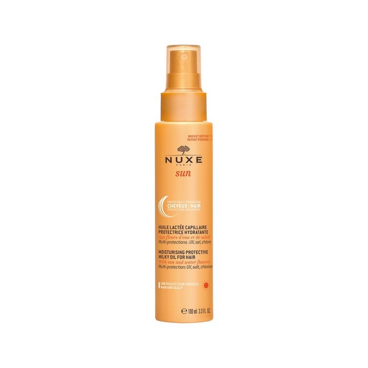 Nuxe Sun Óleo Leitoso Capilar é um óleo multiprotetor, com 83% de ingredientes de origem natural, com propriedades hidratantes e suavizantes, que auxiliam a proteger a cor do cabelo.