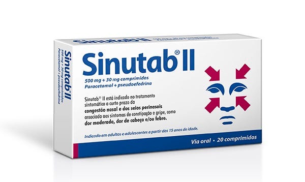 Sinutab II tem ação analésica, antipirética (diminui a febre) e descongestionante. Está indicado no tratamento a curto prazo da congestão nasal e dos seios perinasais associada aos sintomas de constipação e gripe, como dor moderada, dor de cabeça e/ou febre. Indicado em adultos e adolescentes a partir dos 15 anos de idade.